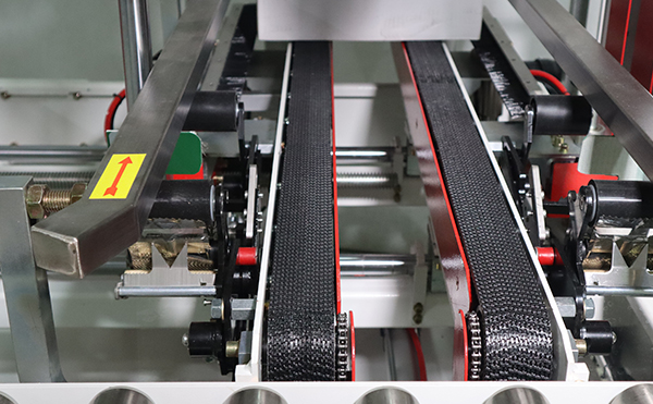 解決“封箱歪斜”問(wèn)題:該全自動(dòng)封箱機(jī)設(shè)備采用自動(dòng)導(dǎo)向機(jī)構(gòu),能夠自適應(yīng)不同尺寸的紙箱。紙箱在輸送線上運(yùn)行時(shí),會(huì)被自動(dòng)校正至最佳位置,確保封箱過(guò)程中膠帶平整、對(duì)稱地貼合在箱體接縫處,徹底告別手工封箱常見(jiàn)的歪斜、起皺現(xiàn)象,封箱效果整潔美觀。